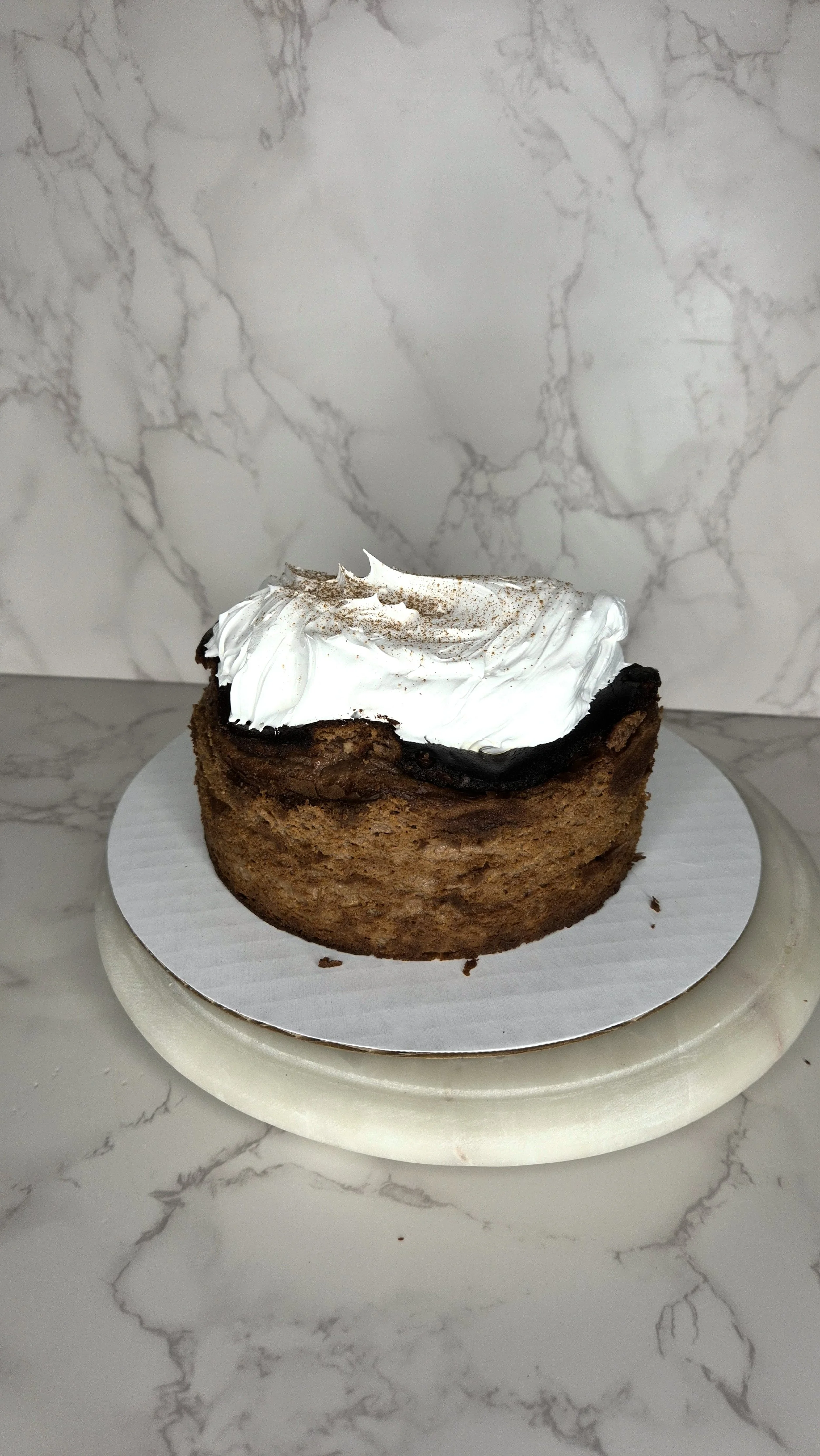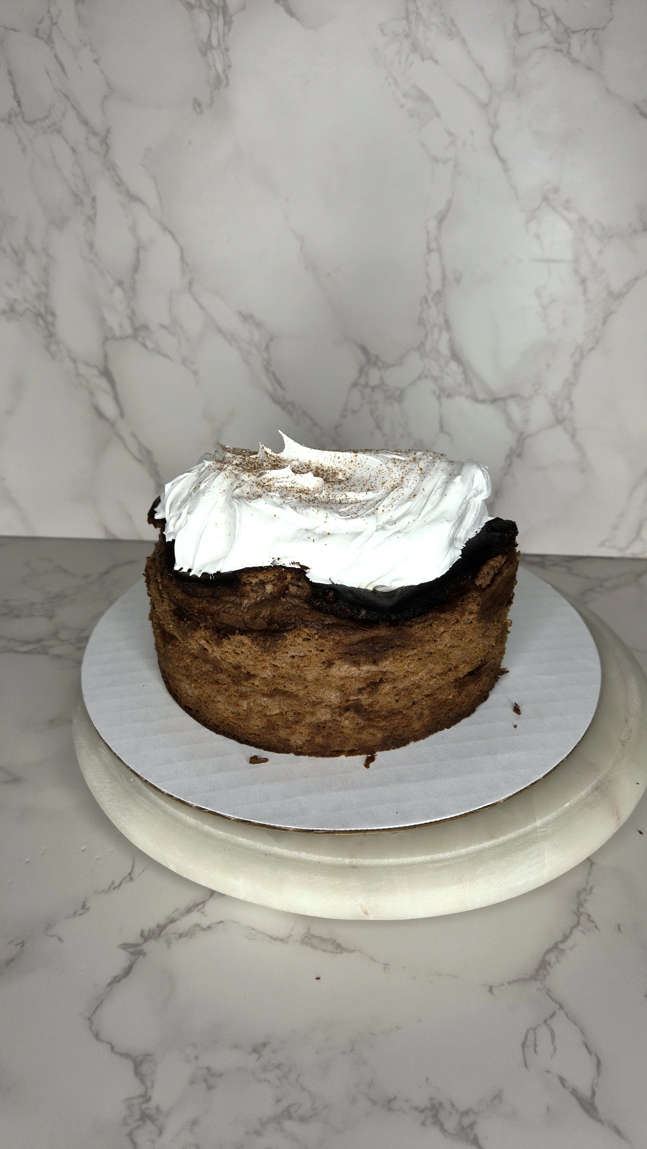 Your Favorite Basque Cheesecake made with Real Hot Chocolate spiced with Cinnamon and Cayenne Pepper. Topped with Housemade Marshmallow Fluff, dusted with Cinnamon.